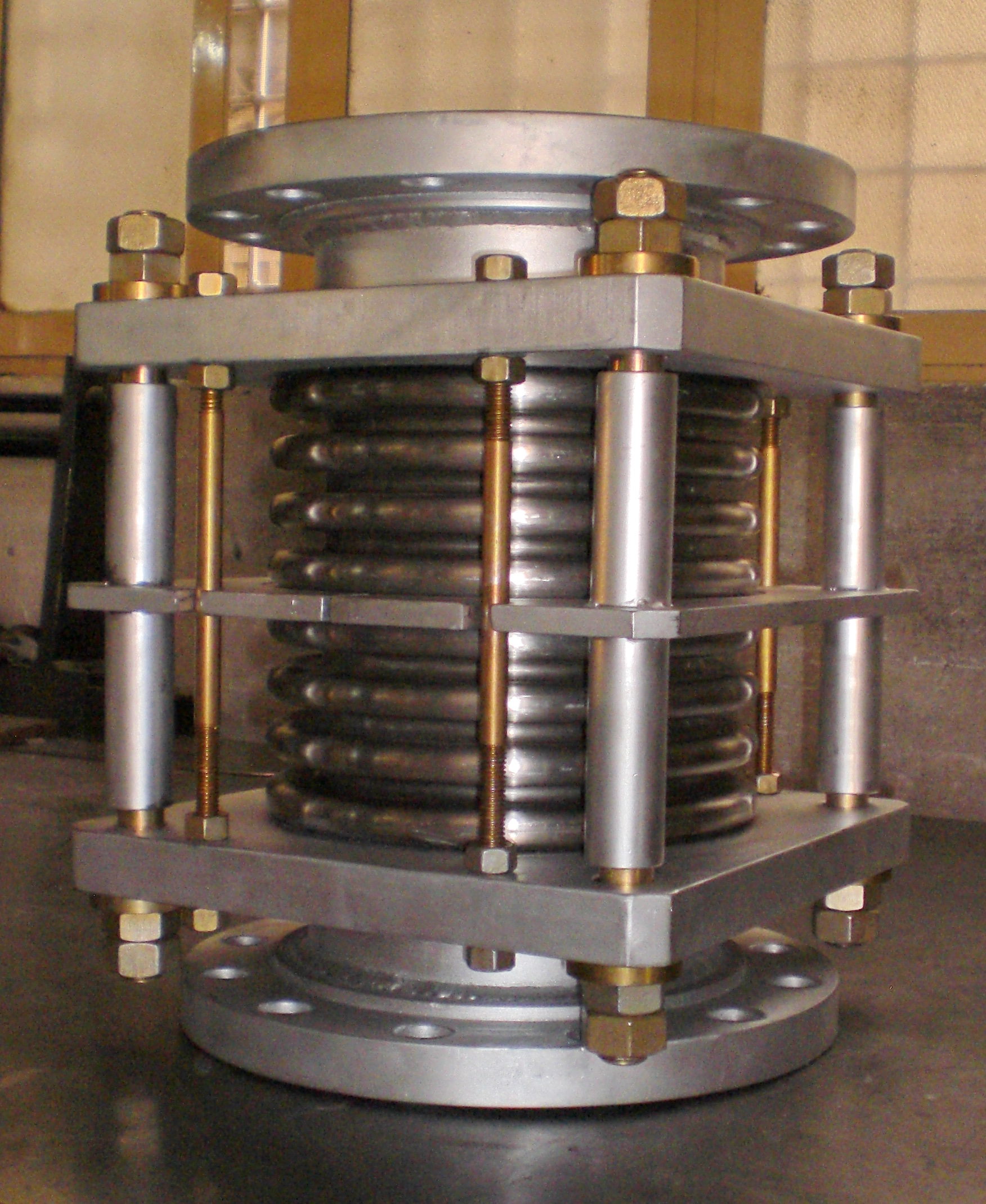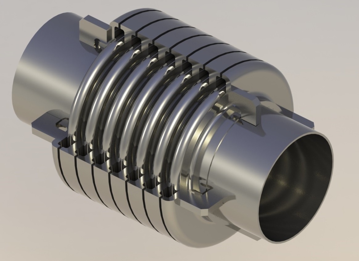 An expansion bellow can be designed with reinforcement or equalizing rings which are normally located around the outside of the convolutions, preventing bellows forcing out under high pressure. The main purpose of these rings is to give support from the outside, so that bellows do not squirm under high pressure and equalize movement among all convolutions.